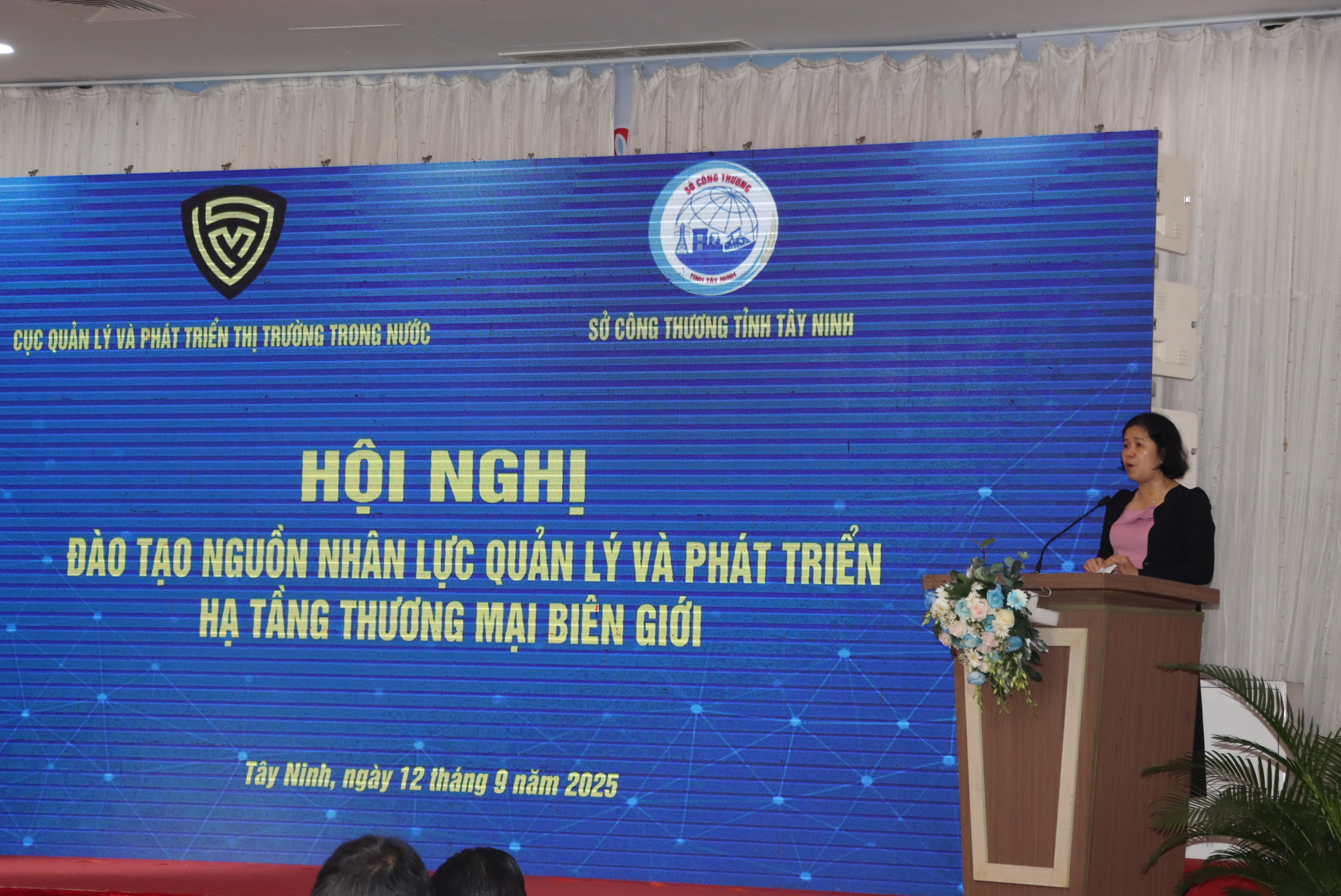 Hơn 100 đại biểu từ các sở, ngành và địa phương biên giới đã tham dự Hội nghị Đào tạo nguồn nhân lực Quản lý và Phát triển hạ tầng thương mại biên giới do Cục Quản lý và Phát triển thị trường trong nước (Bộ Công Thương) phối hợp với Sở Công Thương Tây Ninh tổ chức ngày 12/9/2025. Tại đây, trên 10 tham luận được trình bày, tập trung vào giải pháp nâng cao chất lượng nhân lực phục vụ công tác quản lý và phát triển hạ tầng thương mại khu vực biên giới.